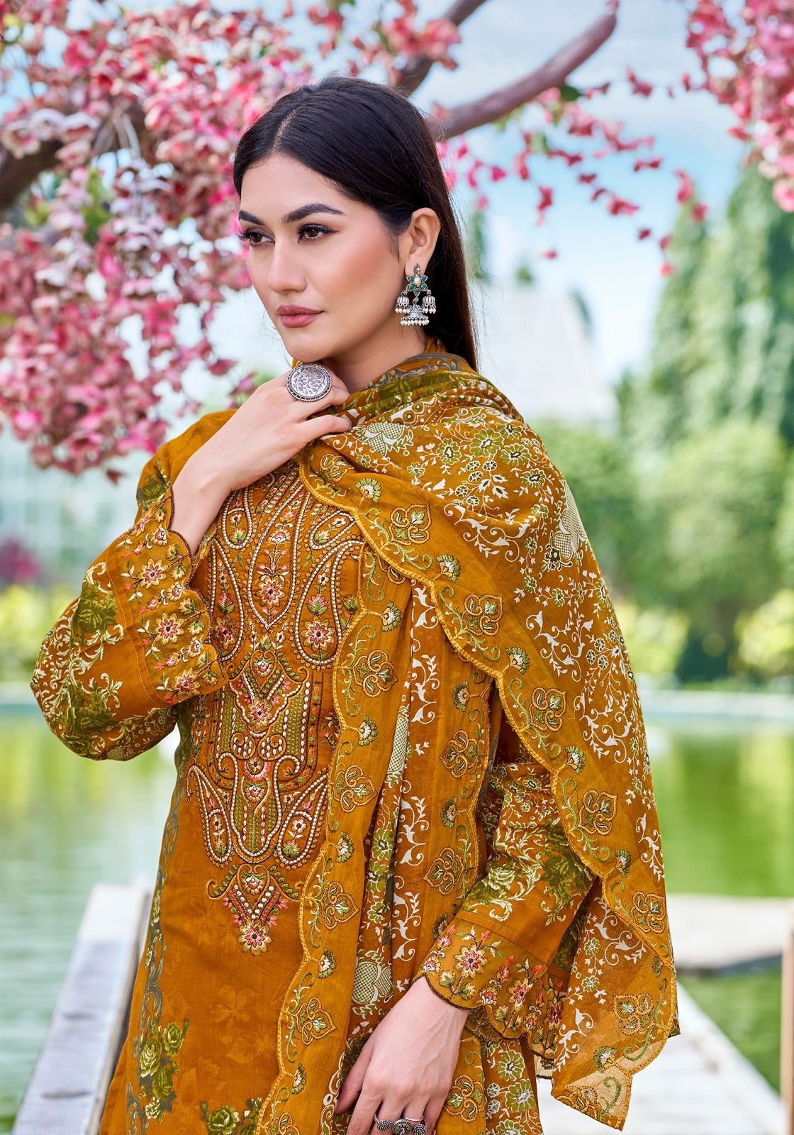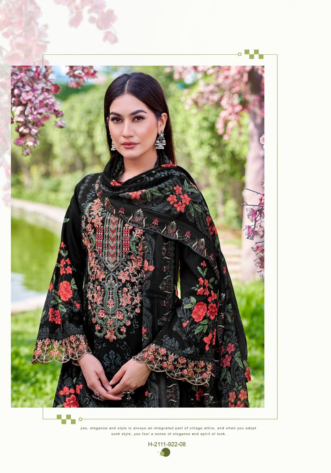 Dup: Pure Cotton Mal Mal Print With Fancy Embroidery Work*8 PCS SET