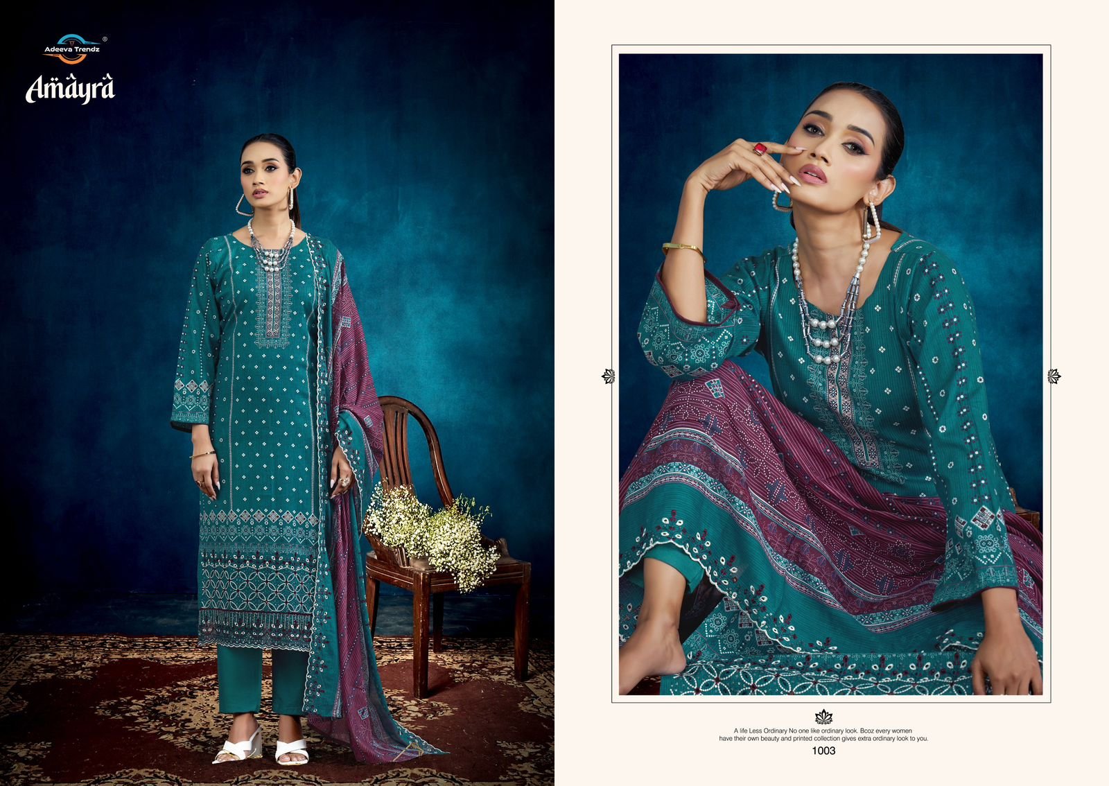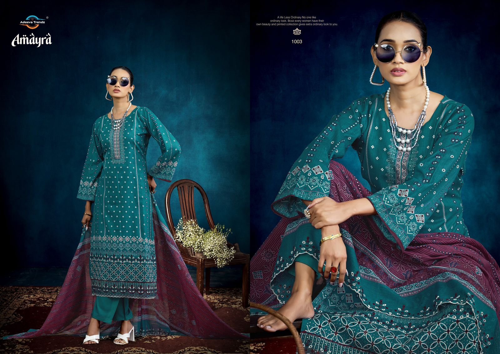 Top: Pure camrik designer digital style print with Designer Damaan embroidery and embroidered lace; Cut: 2.50 mts**