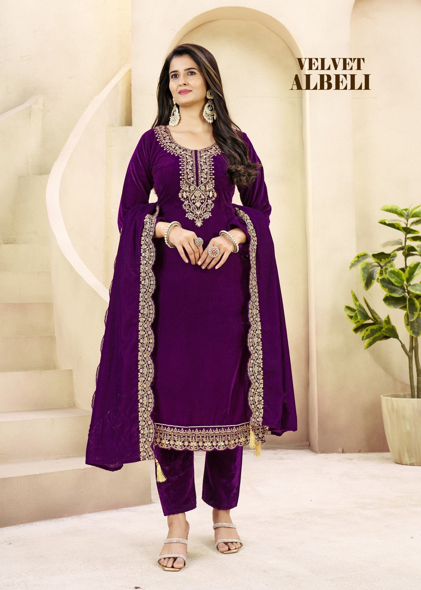 Dupatta- *9000 VELVET WITH EMBROIDERY WORK*