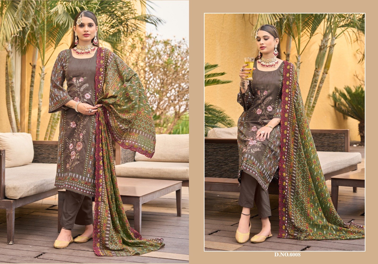 *DUPTTA*- Cotton Print with Fancy two side Embroidery with sequence work