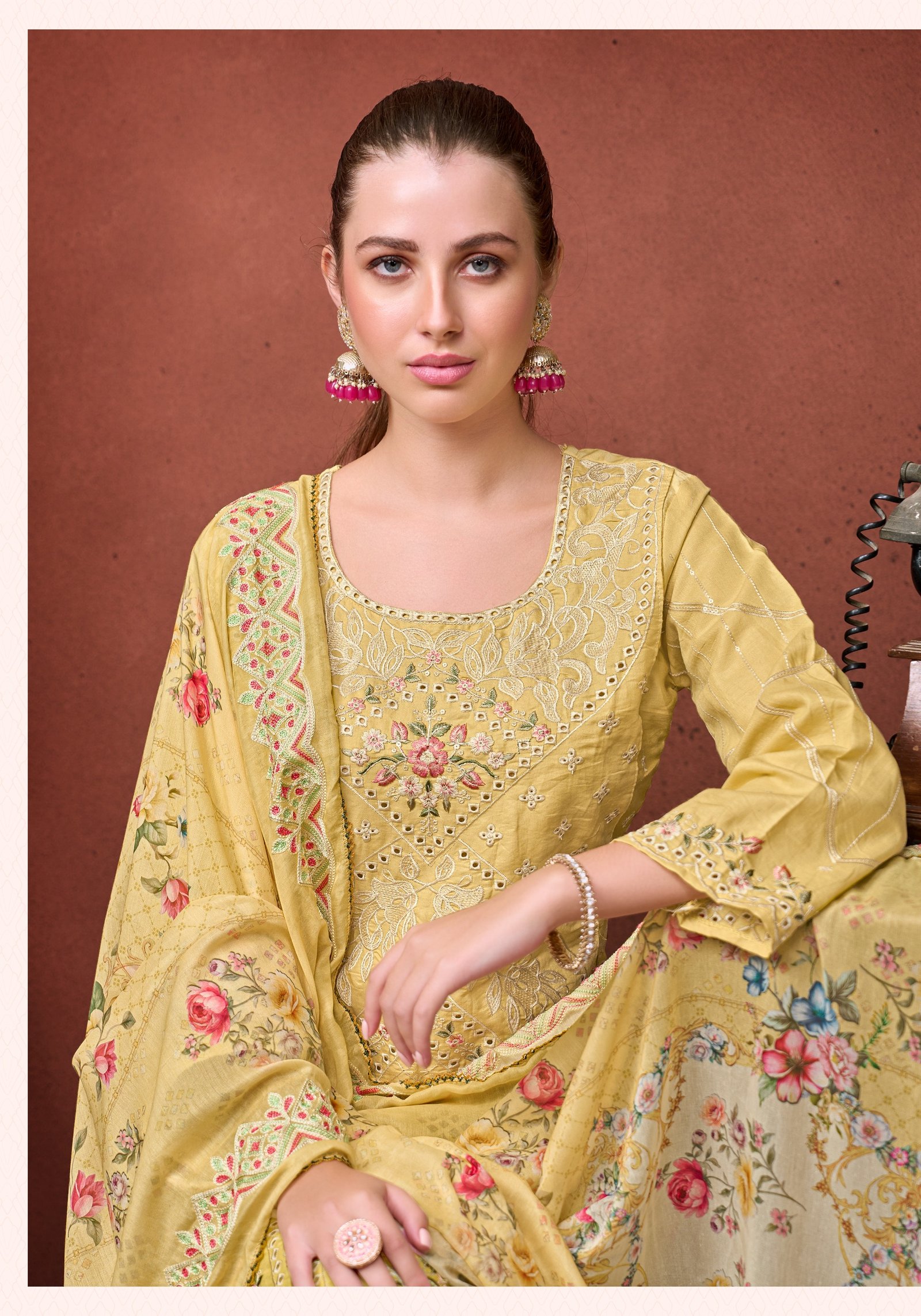 *Dup: Pure Mal Mal Cotton With Fancy Embroidery Work**4 PCS SET*