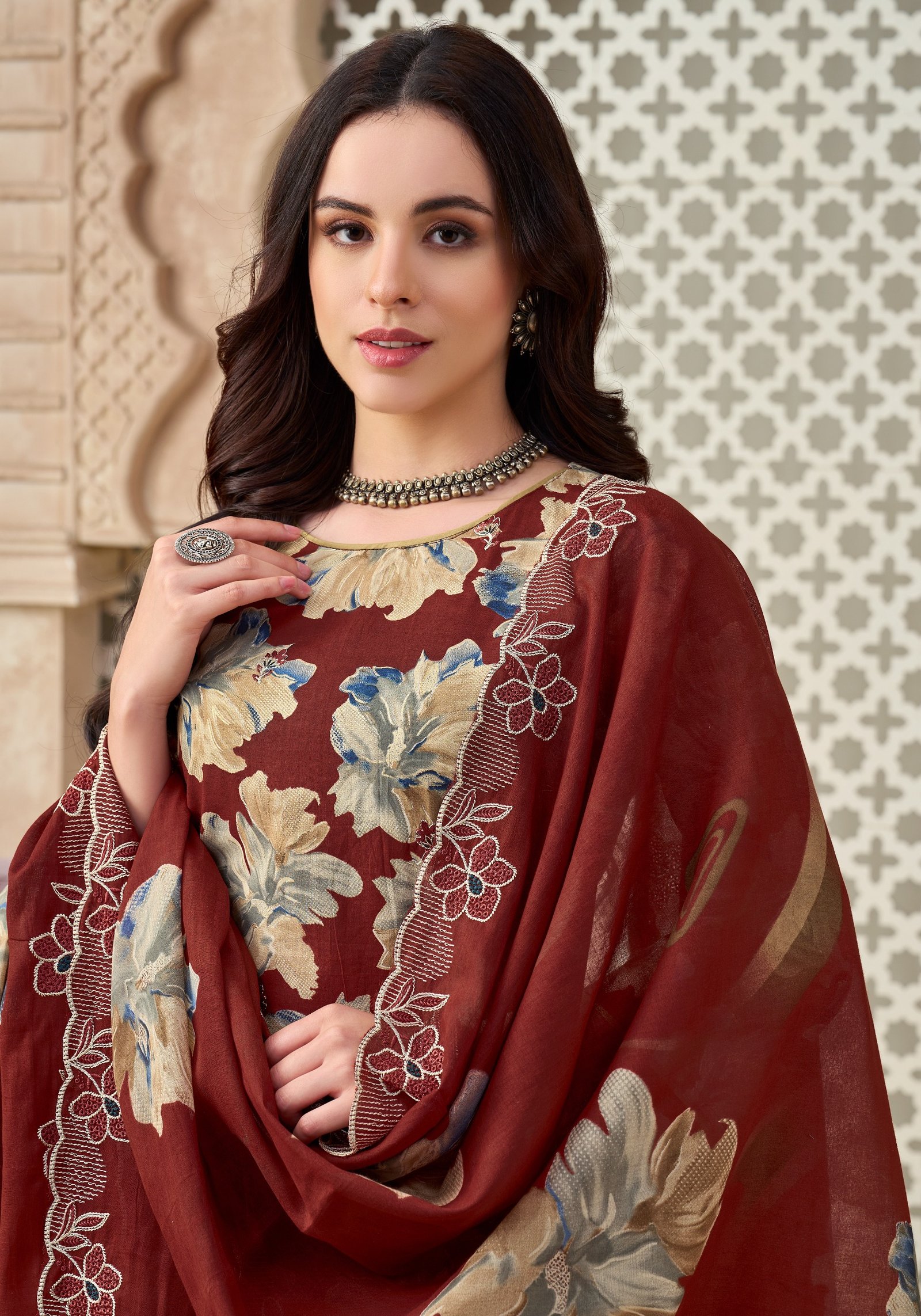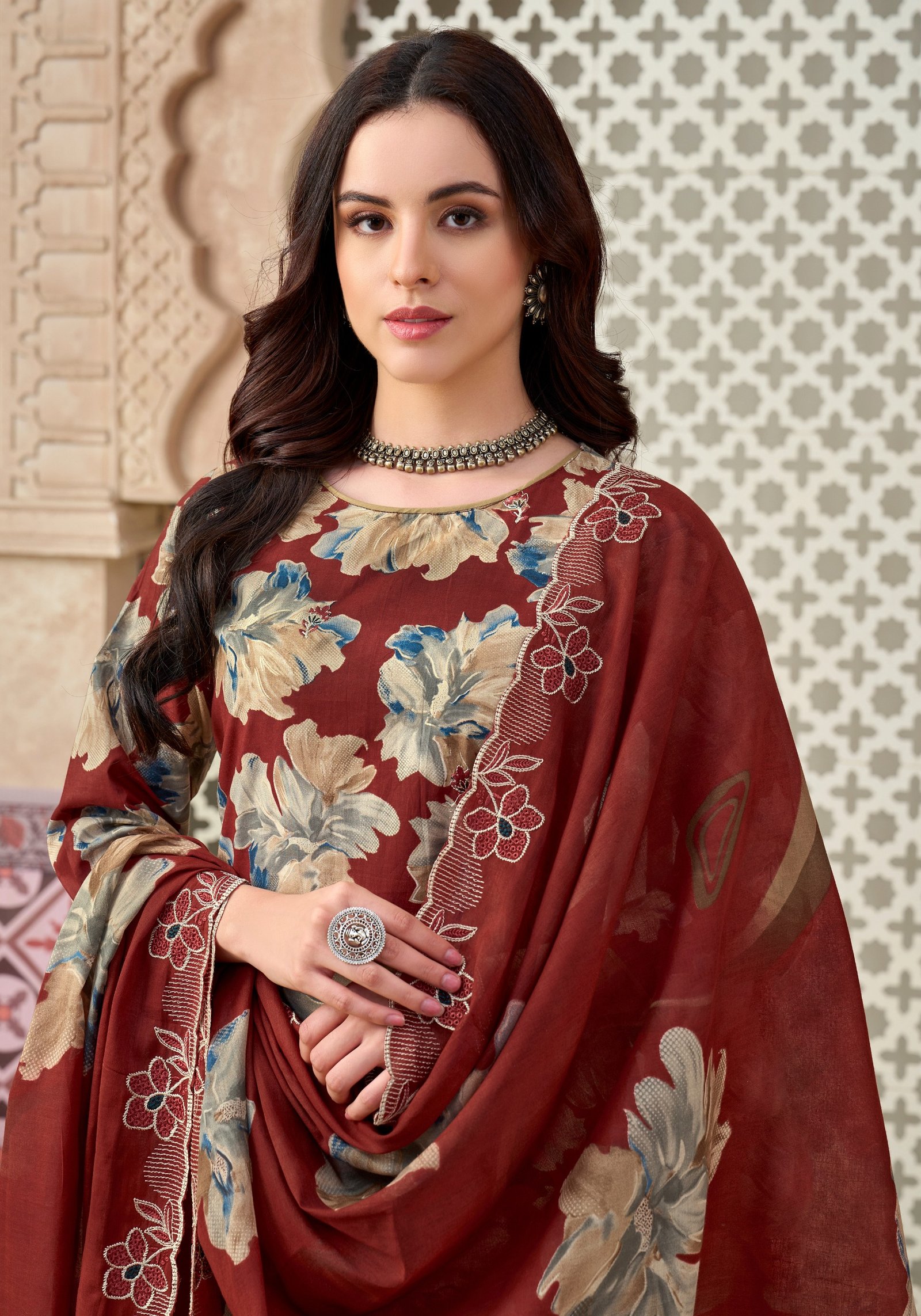 Dupatta: Pure Mal Mal Cotton Designer Print With Fancy Embroidery Work & Swarovski Diamond Work**6 PCS SET*