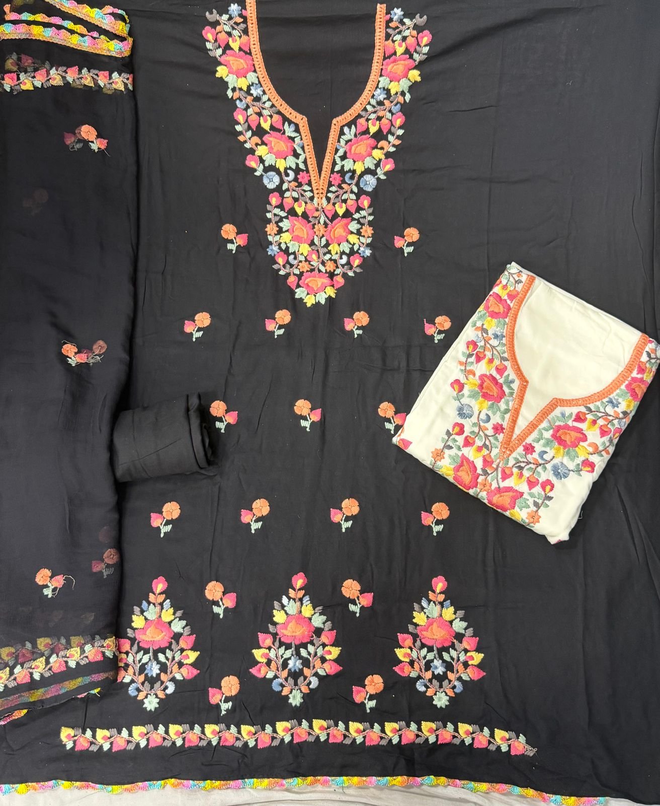 BOTTOM: *RAYON*DUPPTA:-*NAAZMEN CHIFFON WITH KASHMIR EMBROIDERY WORK*