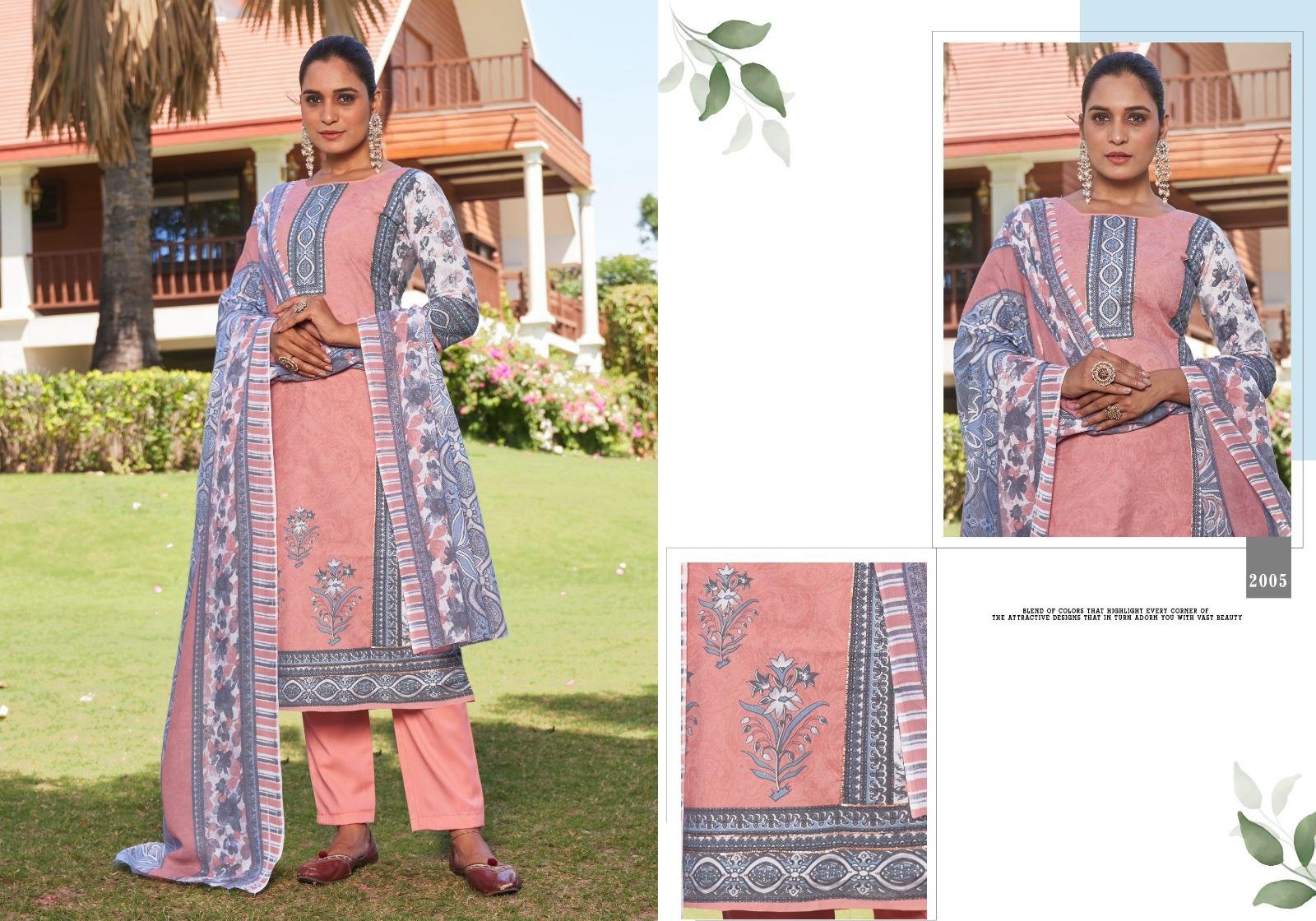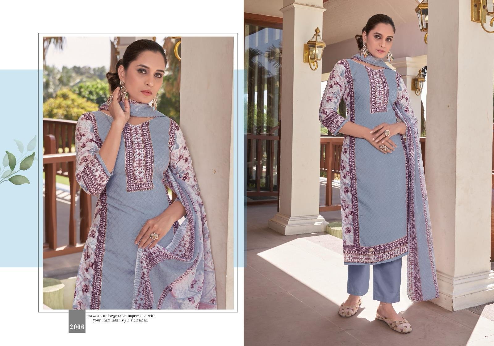 Top: 100% Pure Cotton Designer print with Aari work on neck and daaman ; Cut: 2.50 mts