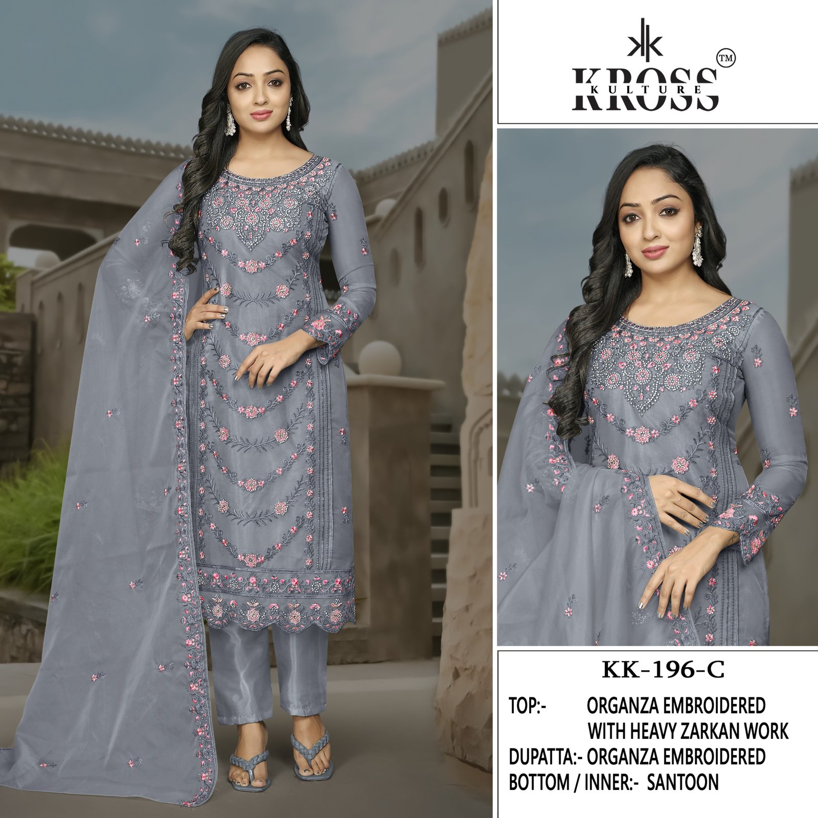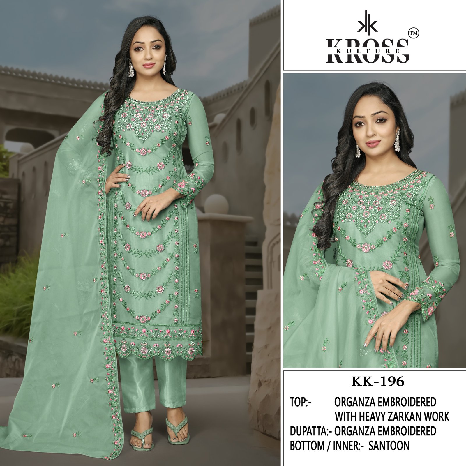 TOP: ORGANZA EMBROIDERY WITH HEAVY ZARKAN WORK