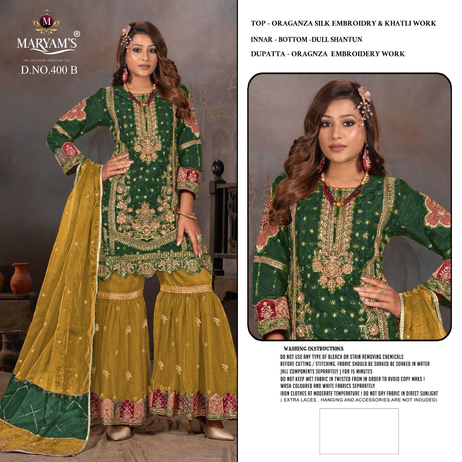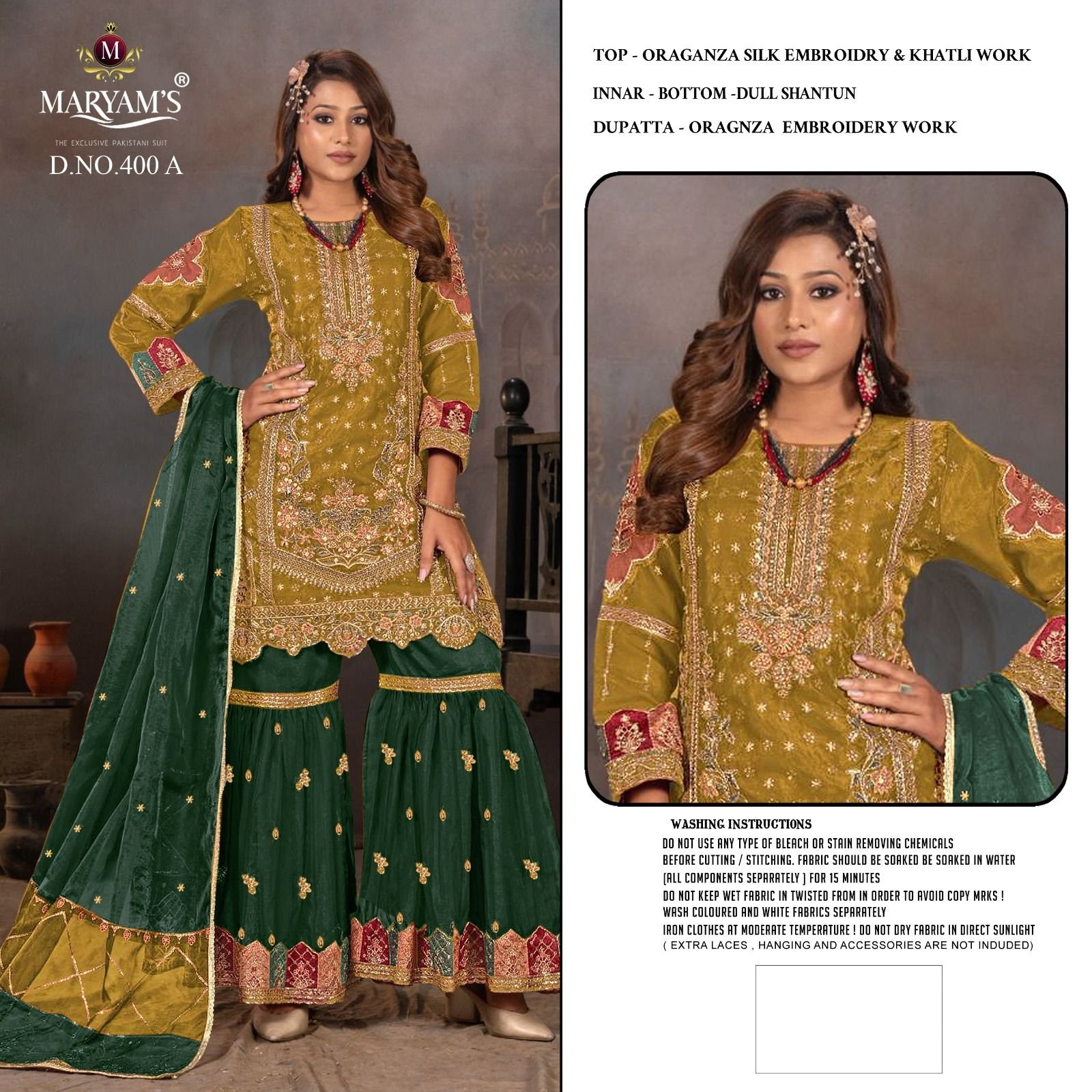 Bottom – Oragnza Embroidery work Pallazo with Inner dull Shantun