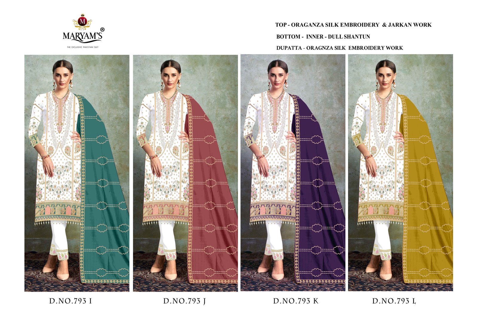 Dupatta : Oragnza Silk Embroidry Work**4 PCS SET*