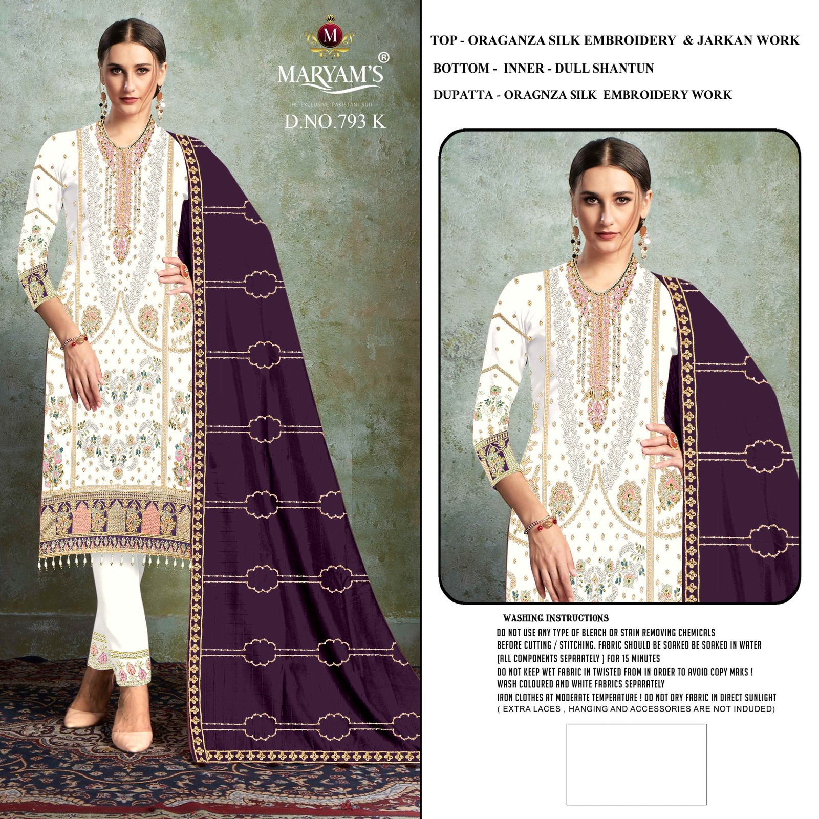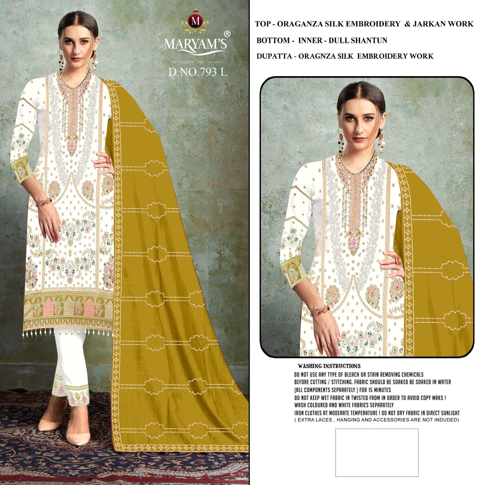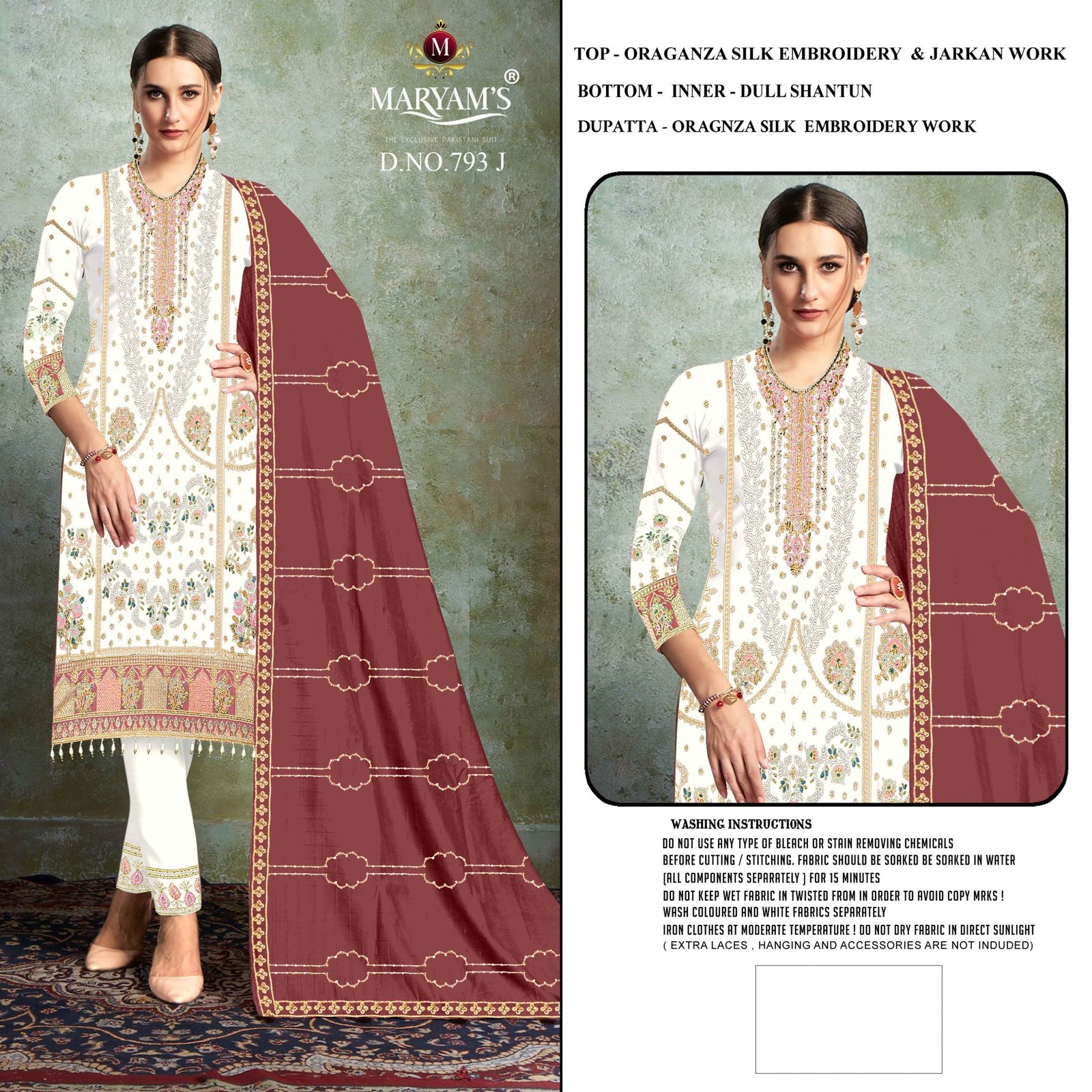 Top : *Oragnza Silk Embroidery With Jarkan Work*Bottom – *Inner -dull shantun*