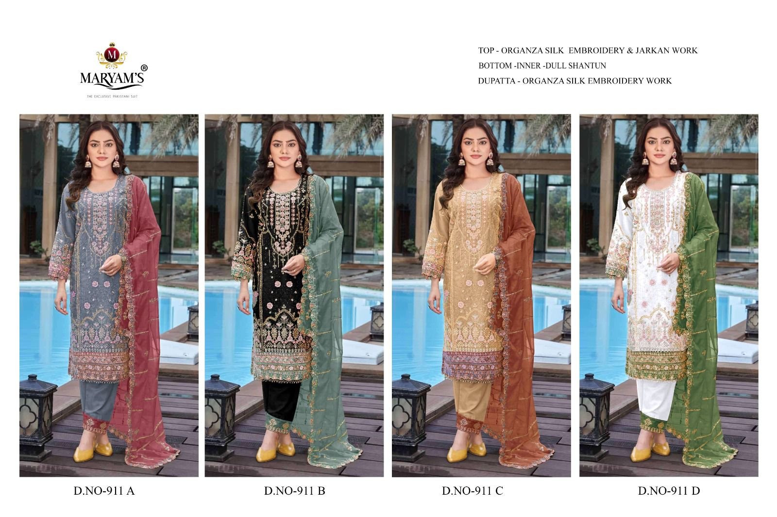 Dupatta :*Oragnza Silk Embroidry Work**4 PCS SET*