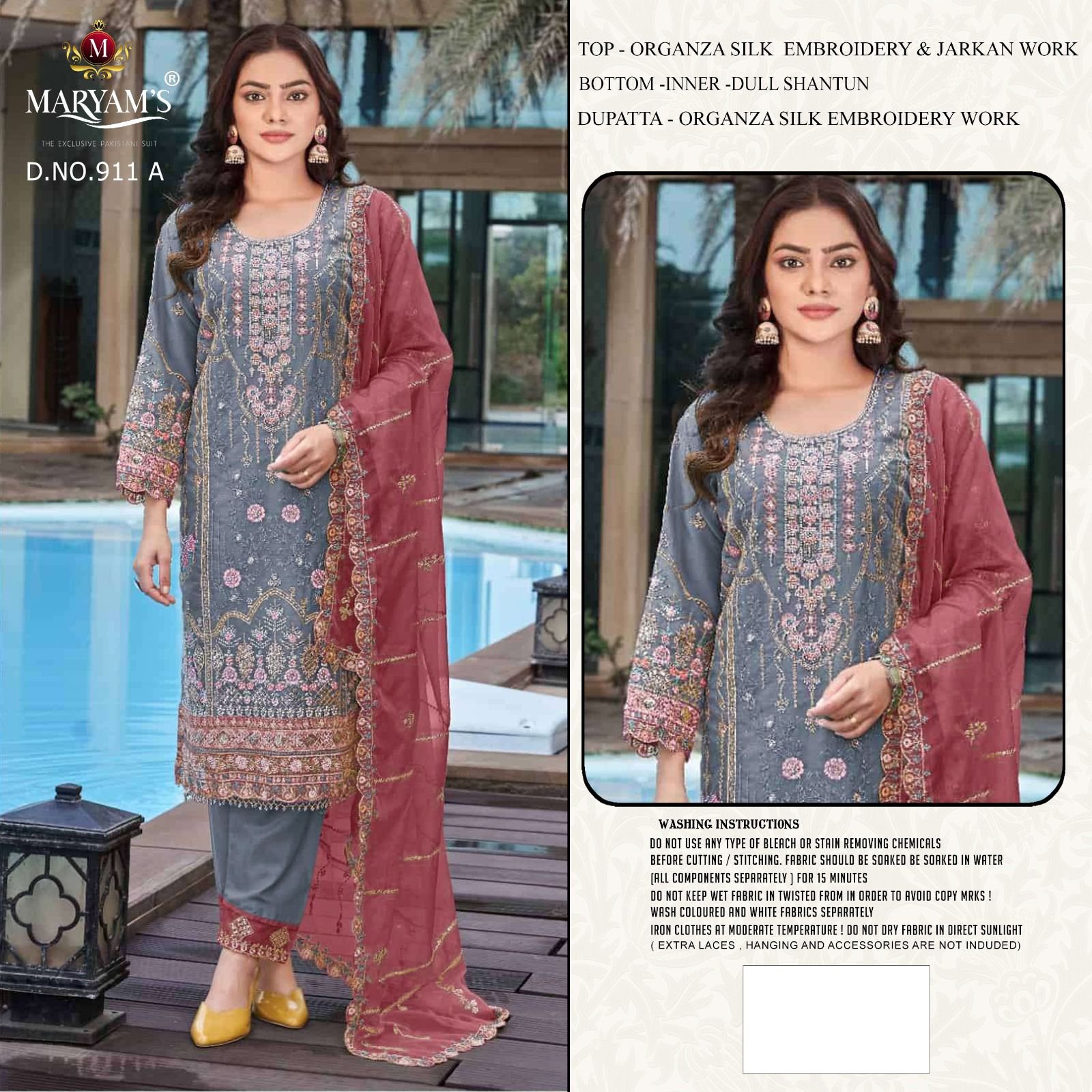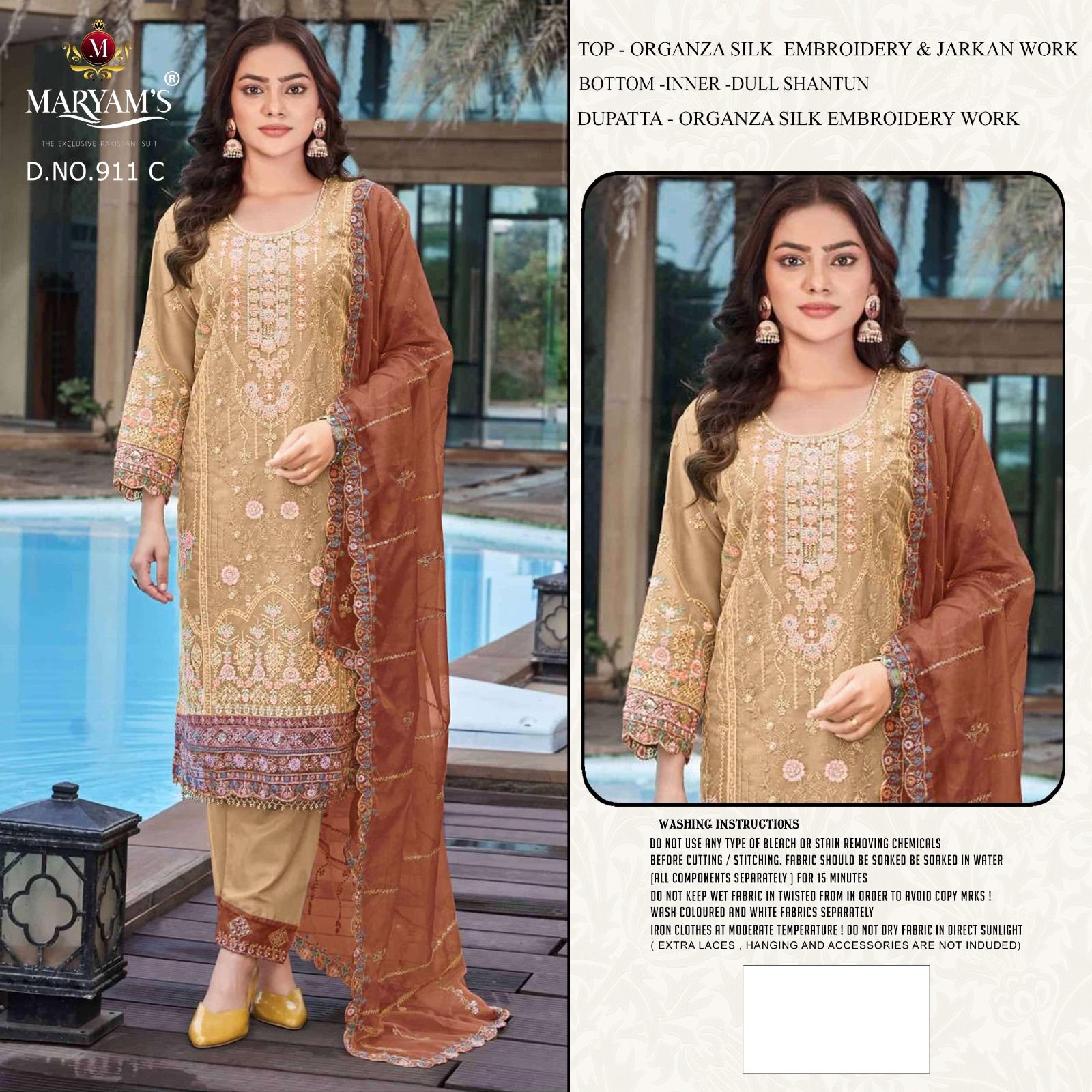 Top : *Oragnza Silk Embroidery With Jarkan Work* inner- *Heavy Dull Shantun*