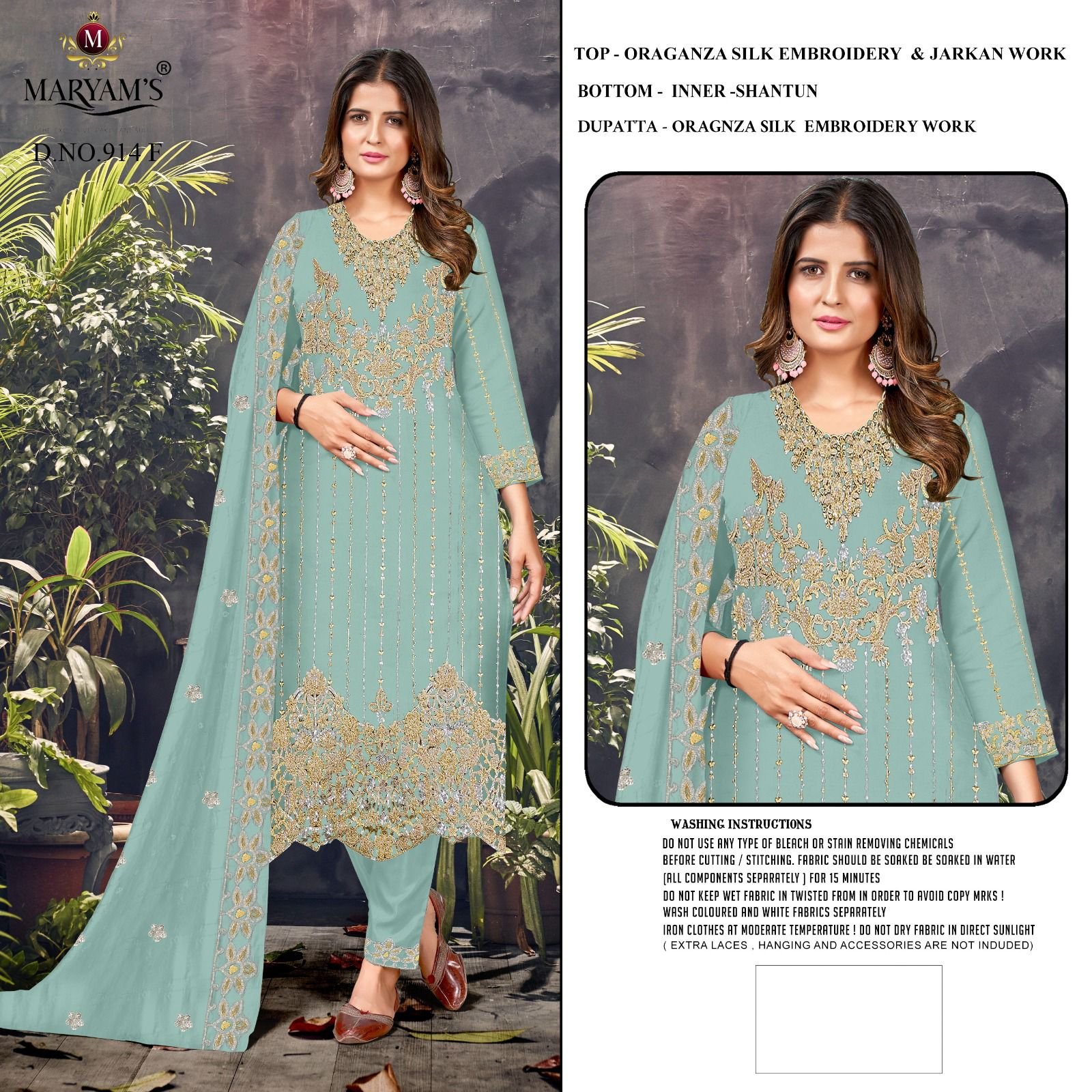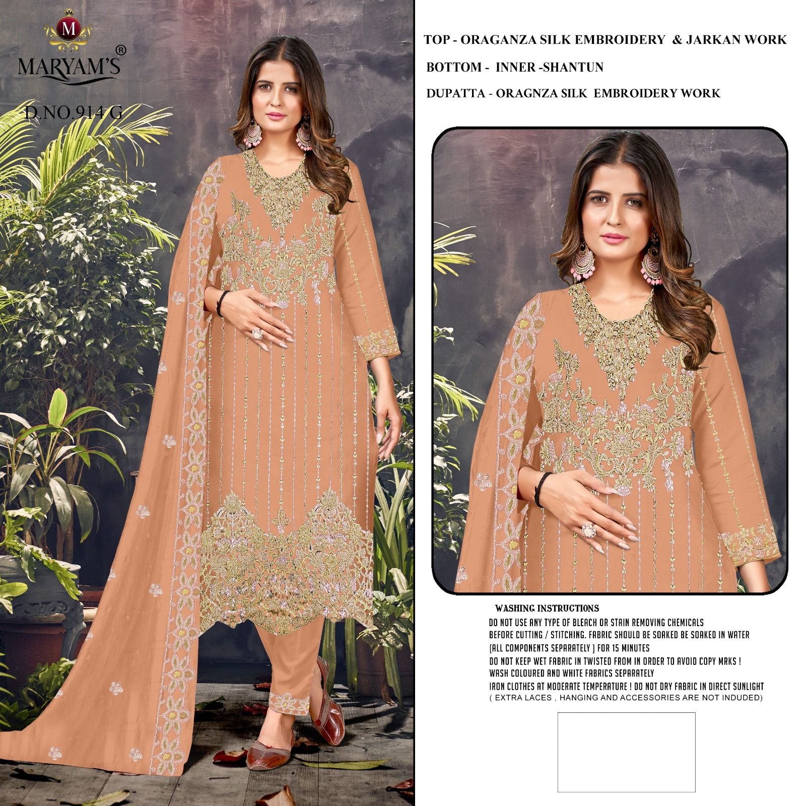 Top : *Oragnza Silk Embroidery With Jarkan Work*Bottom – *Inner -dull shantun*