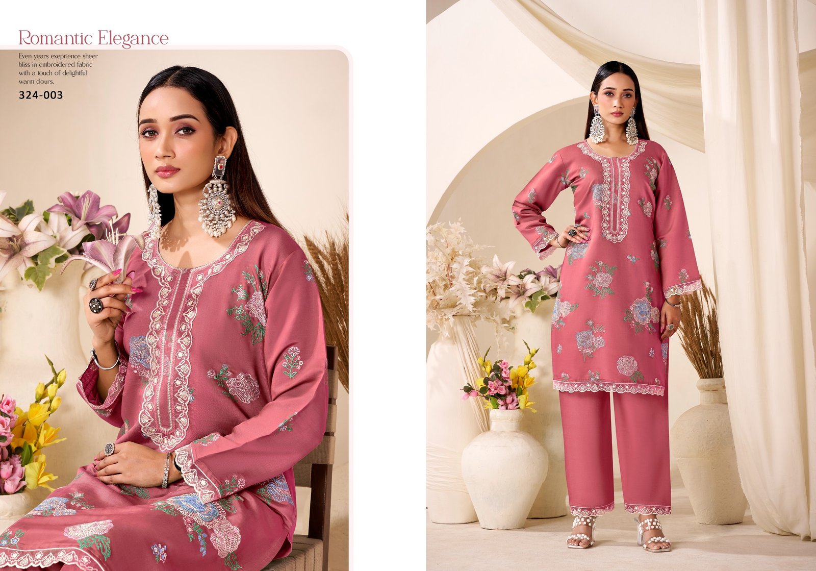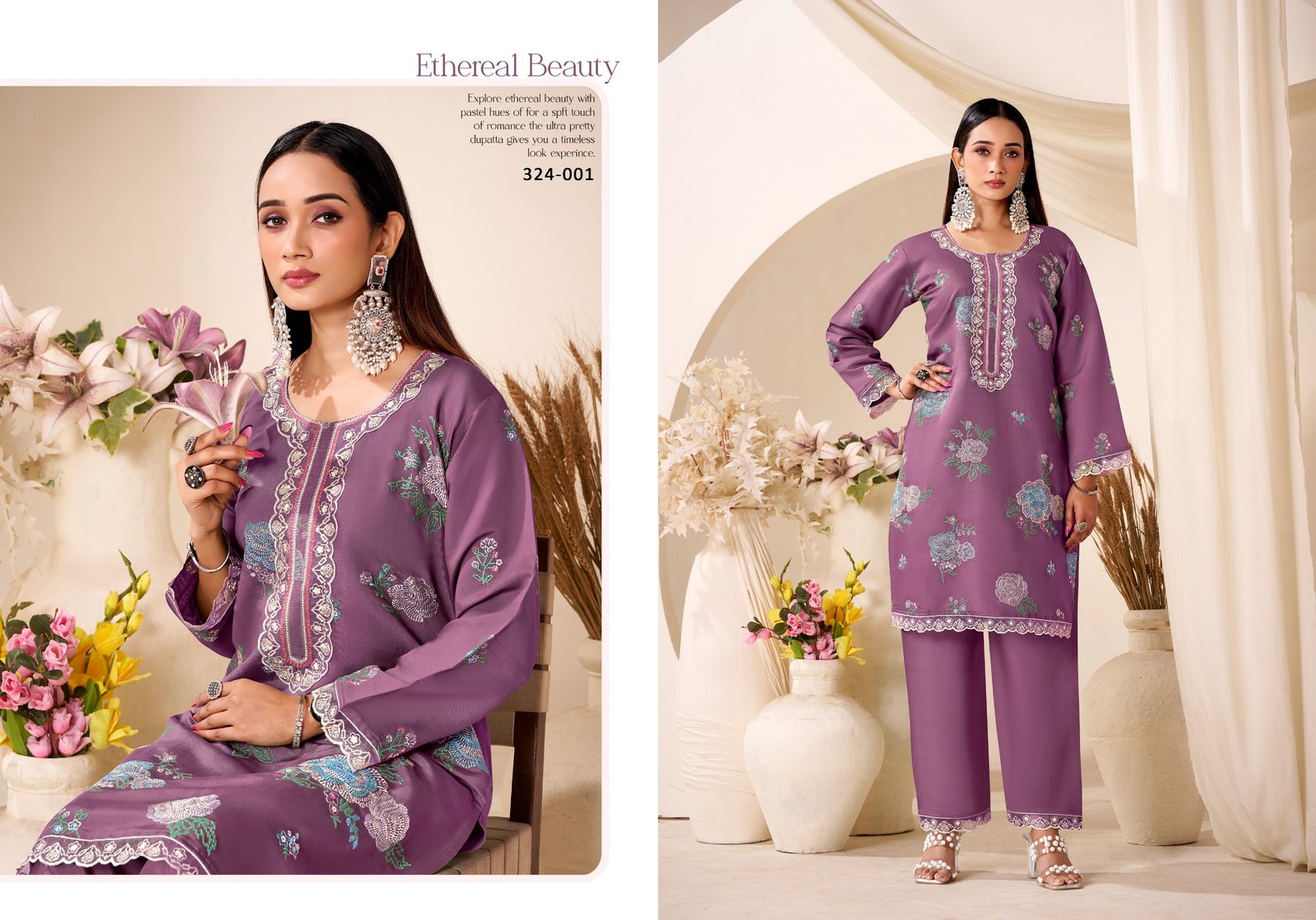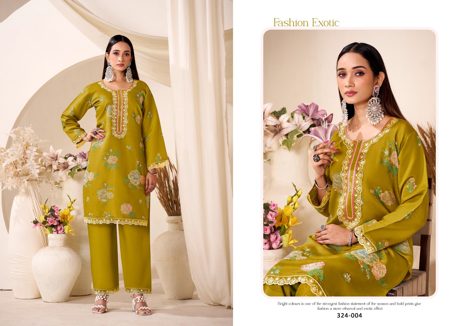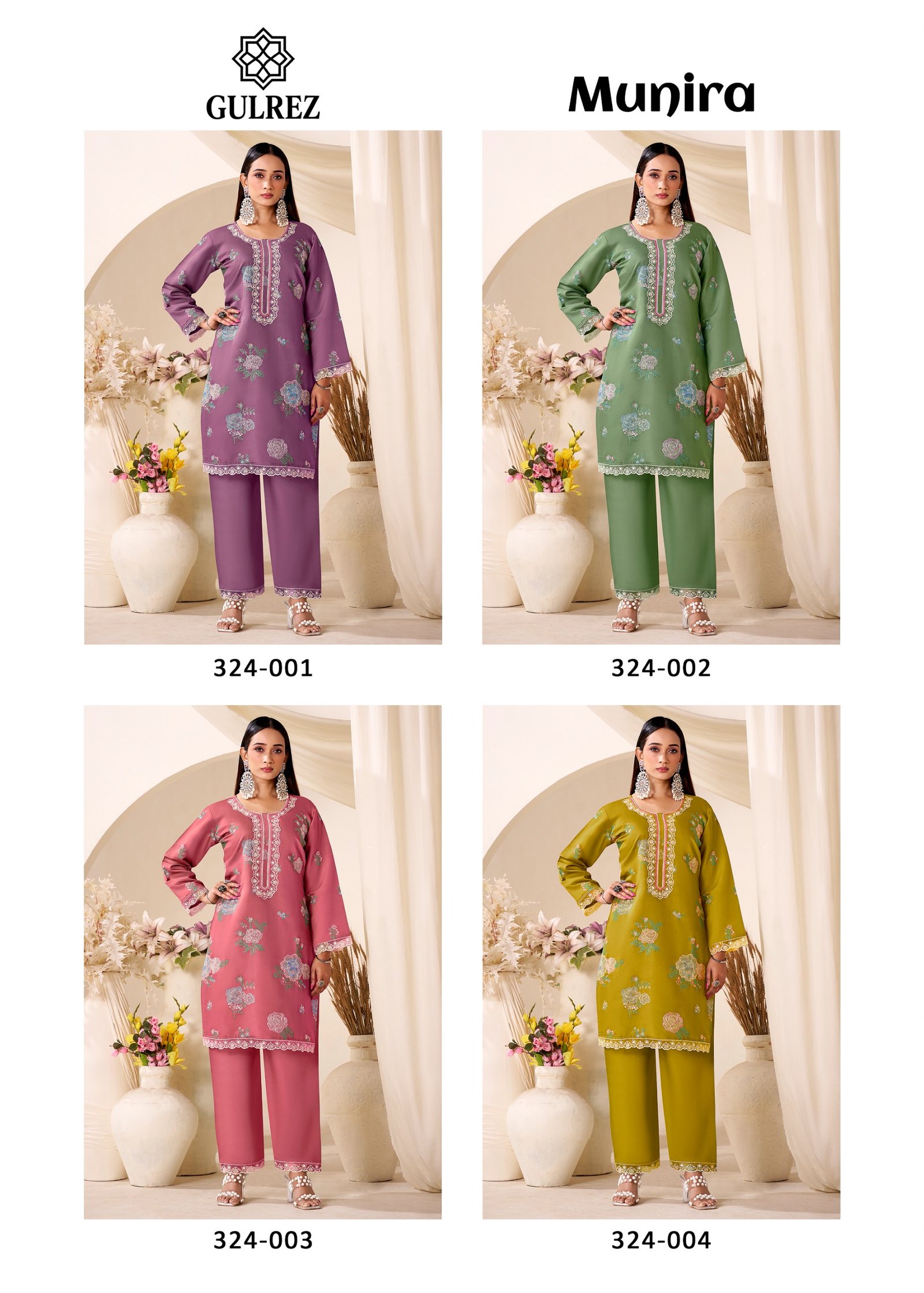 Bottom: *100% Pure Roman Silk with Embroidery work**Set of 4 Pcs*