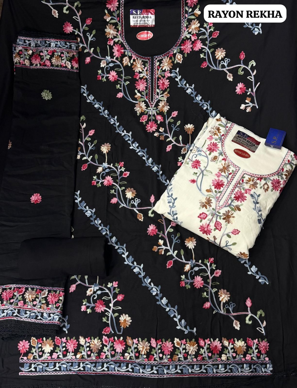 BOTTOM: *RAYON*DUPPTA:-*COTTON BORDER WITH KASHMIRI EMBROIDERY*