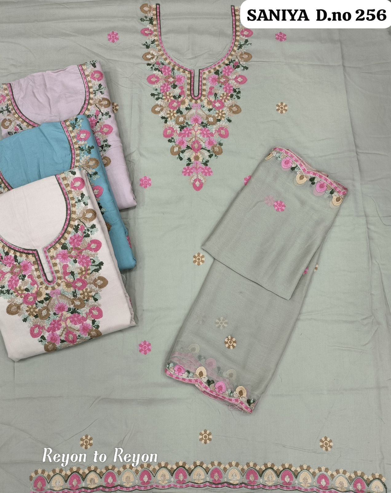 BOTTOM: *RAYON*DUPPTA:-*NAAZMEN CHIFFON WITH KASHMIR EMBROIDERY WORK*