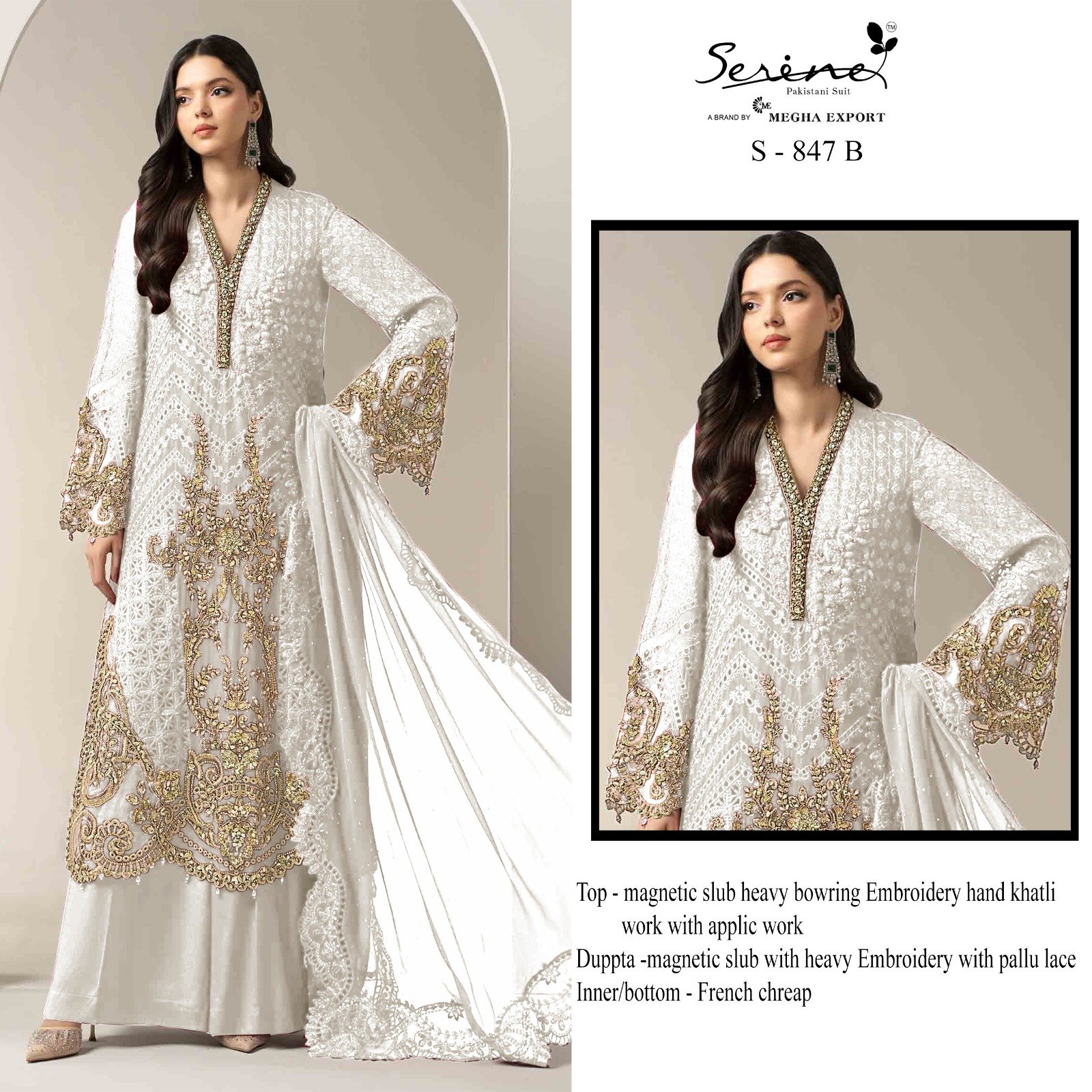 _*Top*_:- Magnetic slub havy Embroidery with khatli work & Applic
