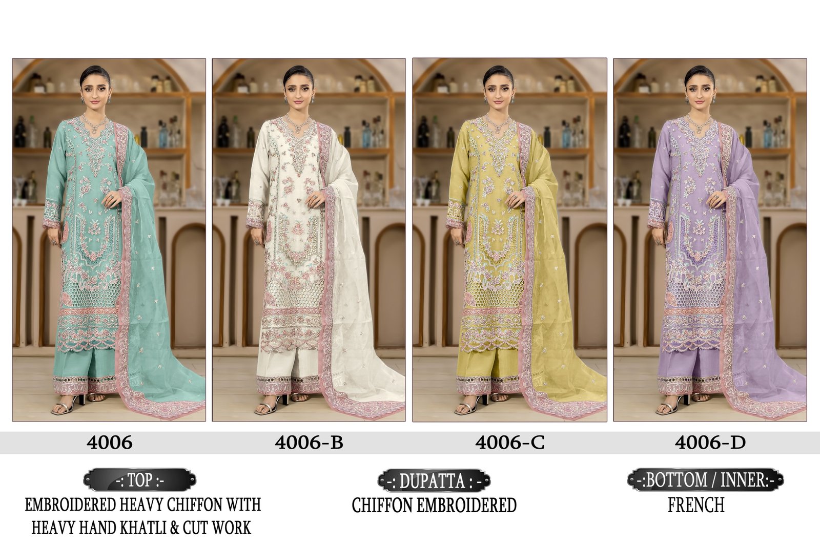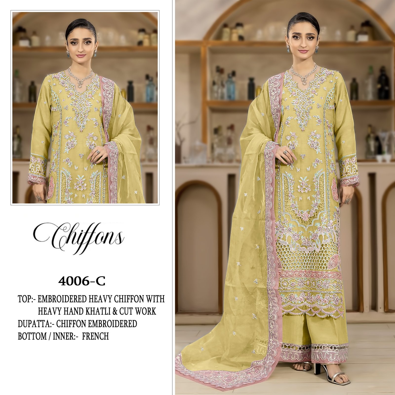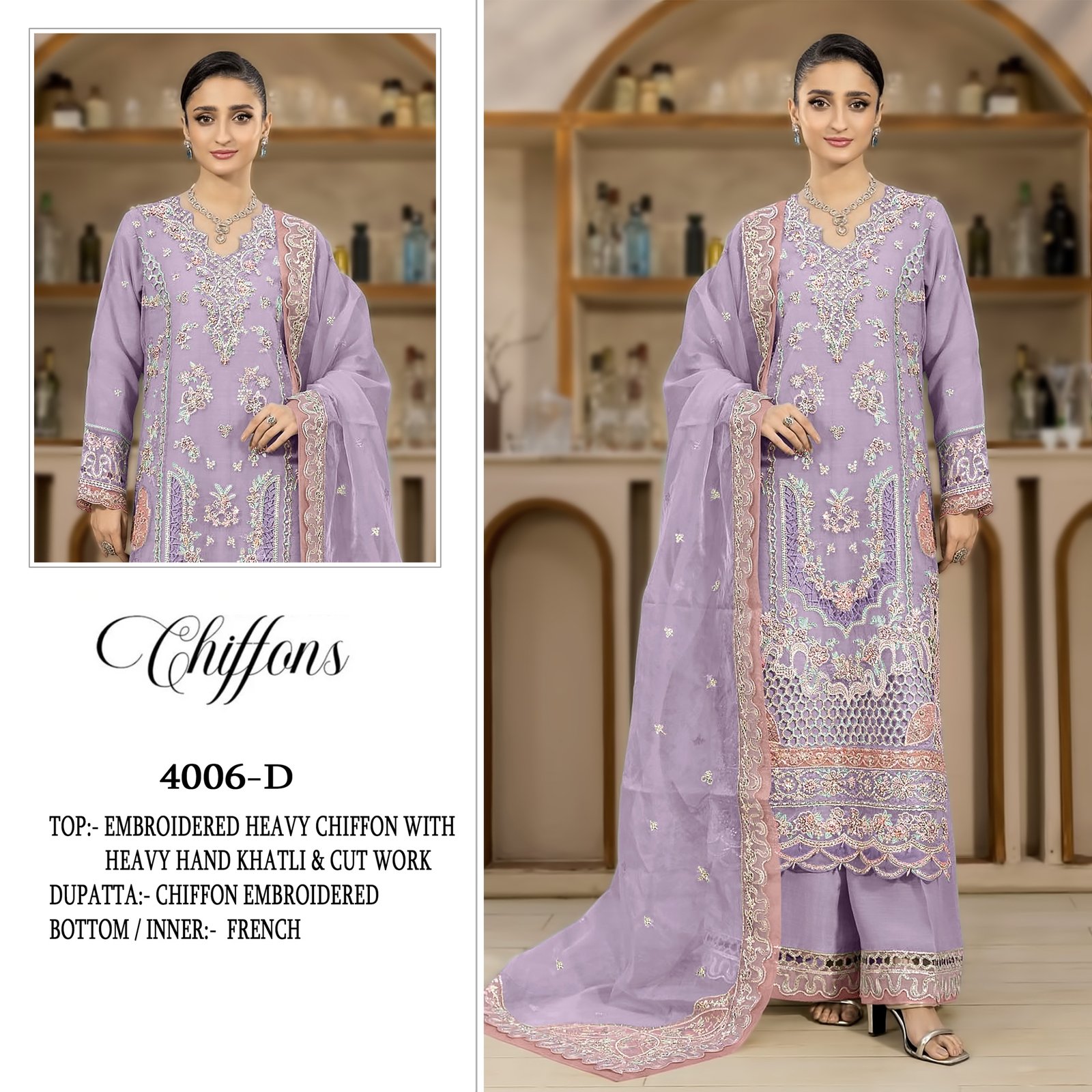 *Top*- chiffon Heavy with heavy embroidery with *HAND KHATLI & CUT WORK*