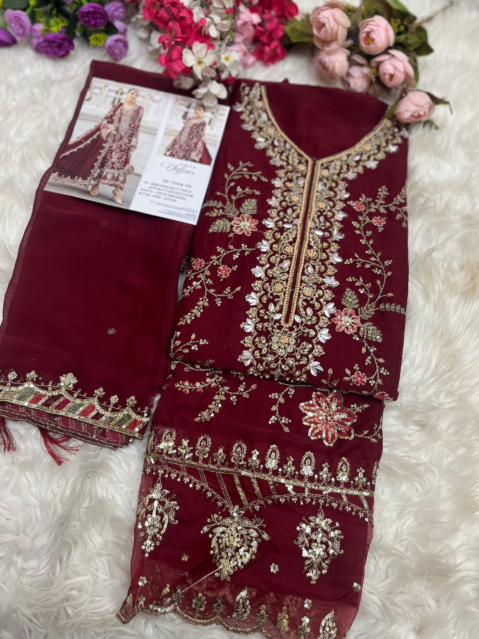 *Dupatta* : heavy DINTING Chiffoy with embroidery